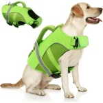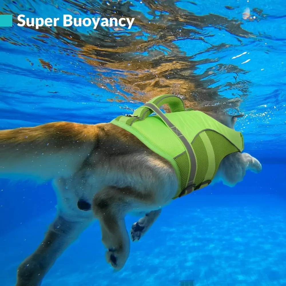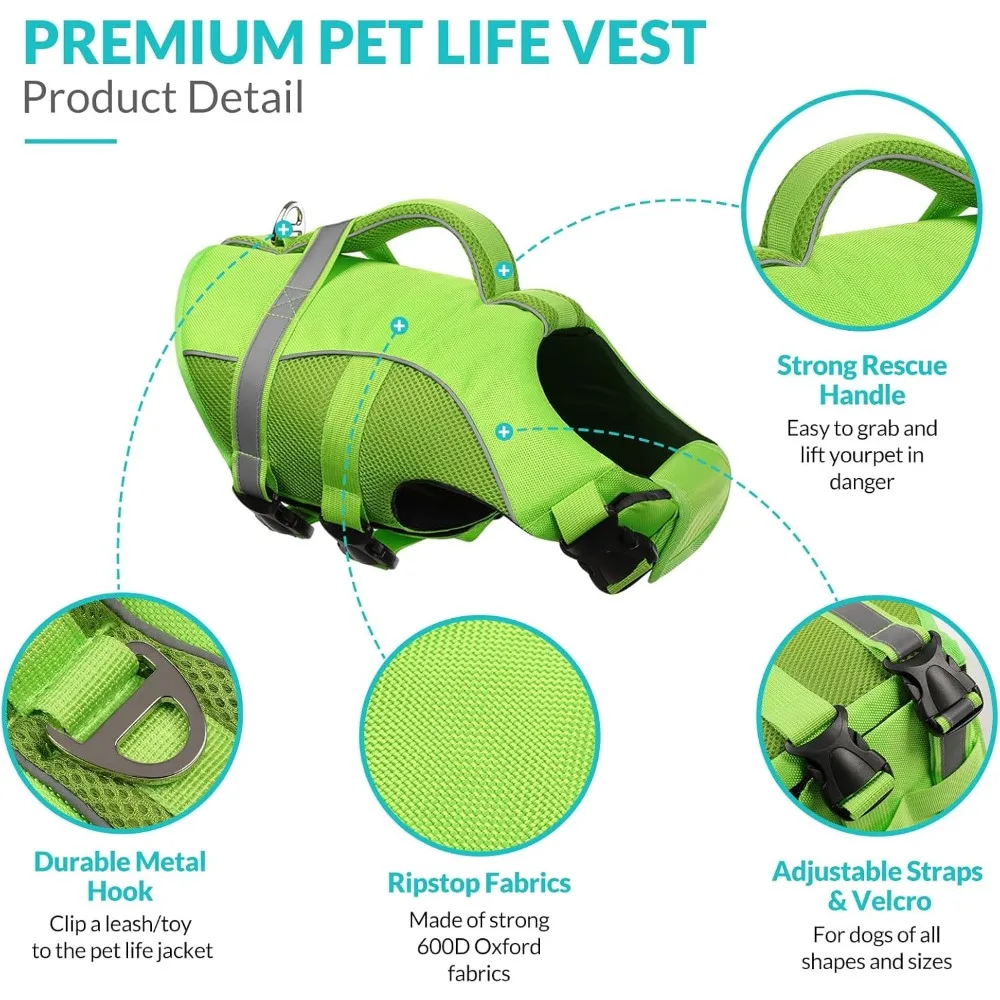 Adjustable Ripstop Dog Life Vest for Swimming & Boating, Lifesaver with Superior Buoyancy & Rescue Handle, Green, M