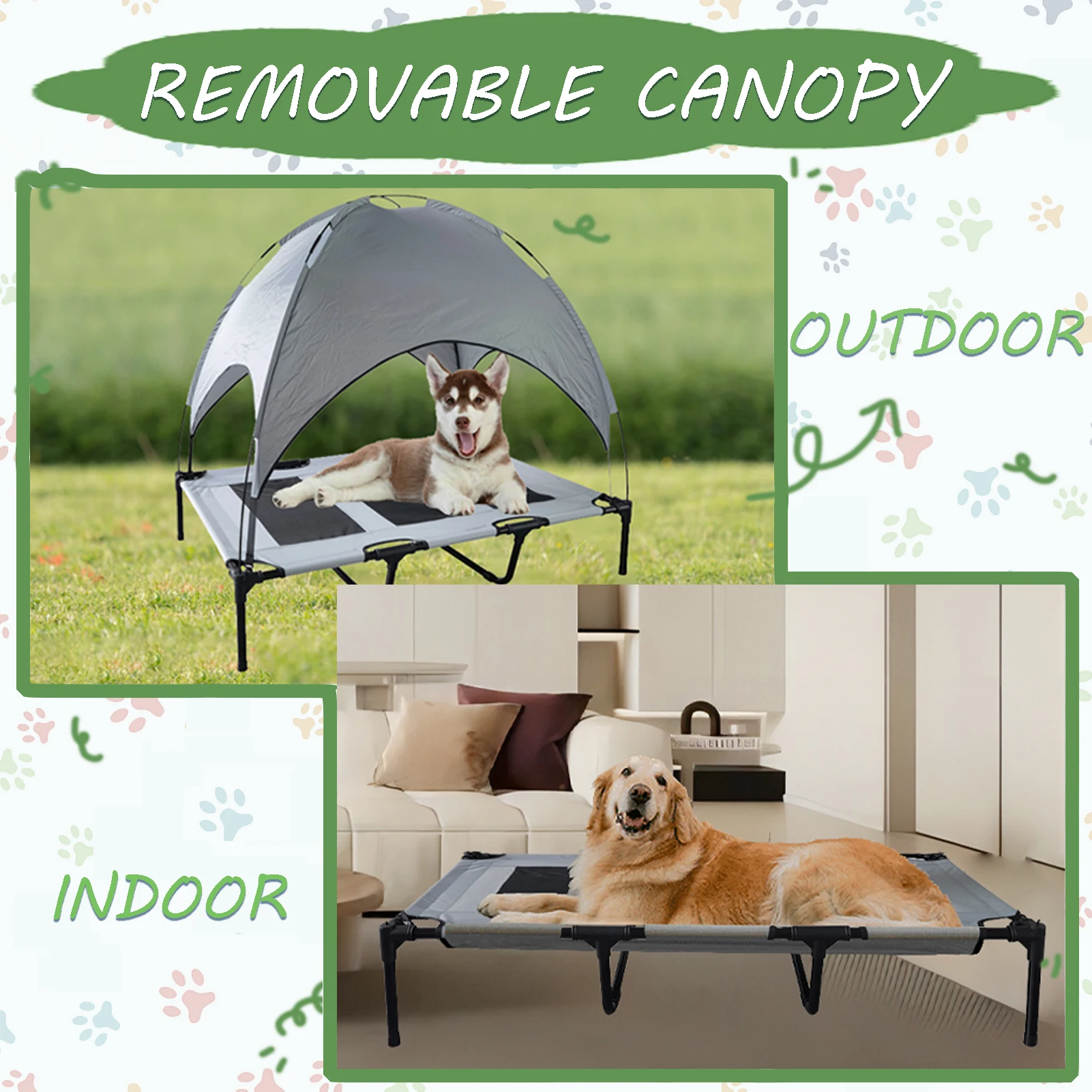 【Removable Canopy】- the roof is easy to install and disassemble, which can meet the needs of indoor and outdoor use. If you want to put the bed indoors, you can remove the canopy. If you want to spend a great outdoor vacation with your furry friend, you can install the canopy onto the bed.